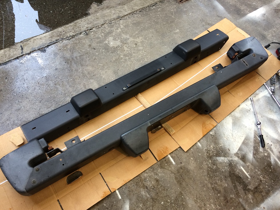 このバンパーを直してつける予定だったのですが急きょ純正のバンパーに戻して