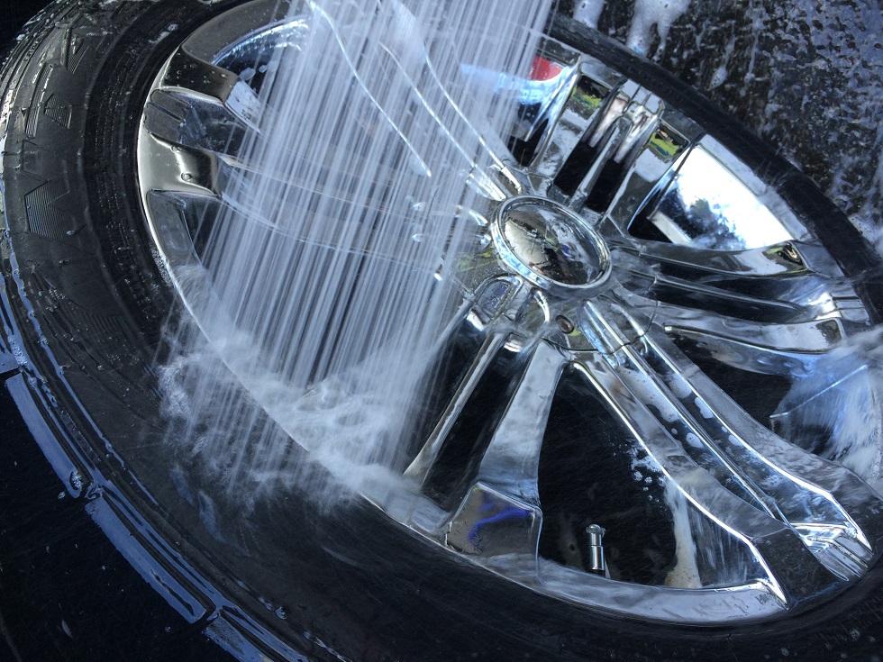 洗いましたら水で綺麗に流しホイール&タイヤ洗浄完了です!!