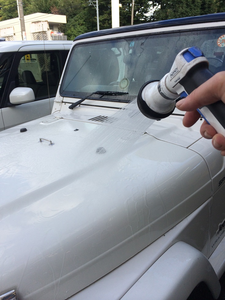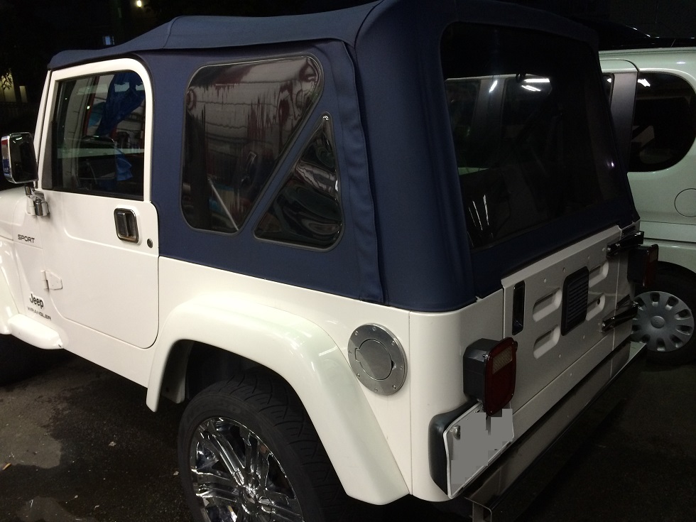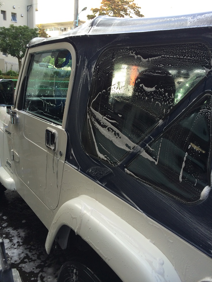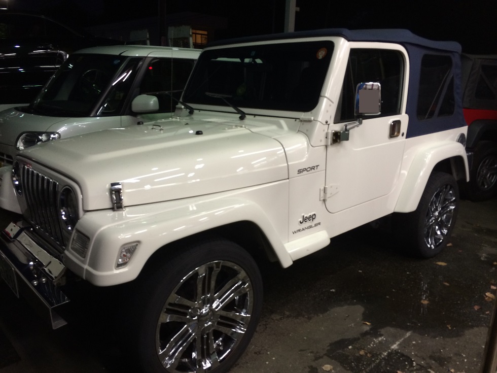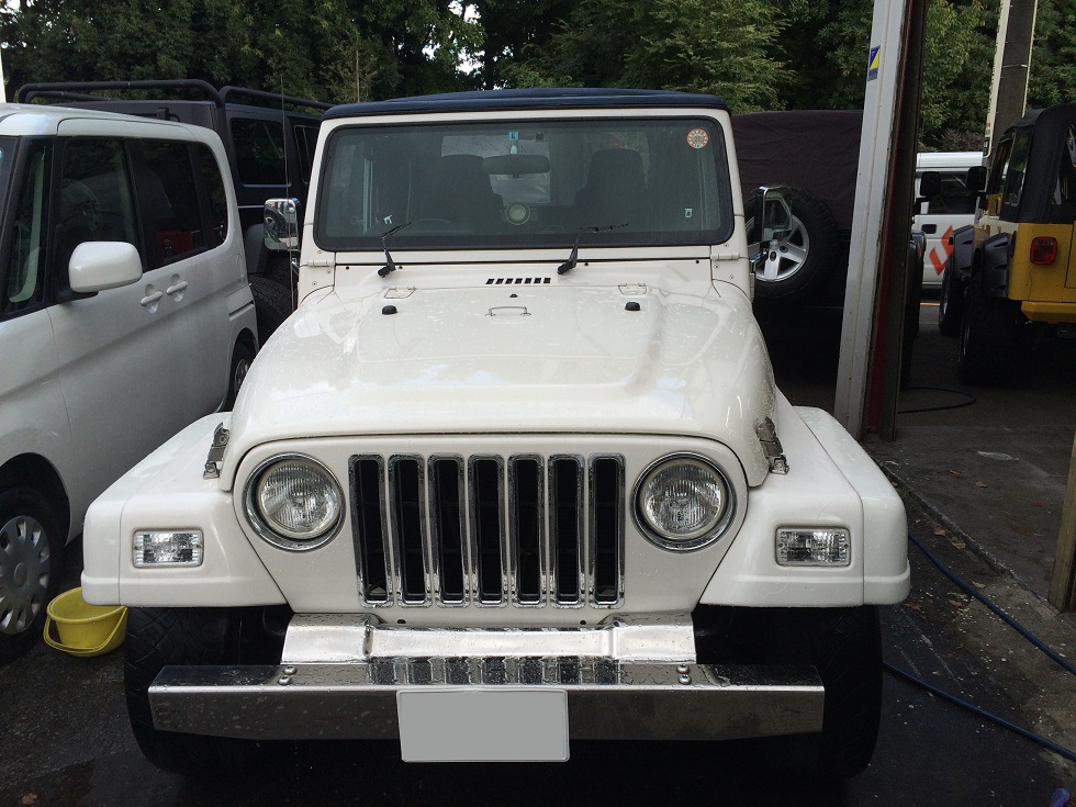 最近なかなか洗車できていなかったデモカーのTJラングラー ホワイト20インチ!!を