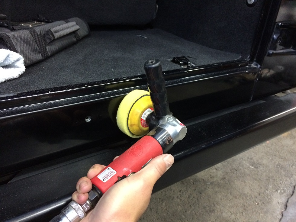 続いてはやはり展示車のリアハッチを開けて下の部分が汚れてきていたのでそこの磨き込み!!